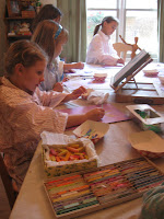 KINDERART CLASSES. Dancing with Degas! Using soft pastels like the Master Artist, Degas, we started by planning the ballerina’s pose and her costume colors. It was interesting to use the tip of the pastel stick as well as rubbing it on its side, then using cotton swabs for color blending. Che bella Ballerinas!
