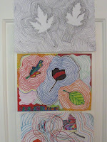FALL IS IN THE AIR. When you don’t want to carve your pumpkin until closer to Halloween, you let your grandson use sharpies and markers to design a funny face! Radiating Leaves has become an interesting art project. First the children draw “real leaves” and then outline them with pens, keeping the lines as close as possible without touching, until the radiating lines “bump” into each other! Op-Art with vibrations!