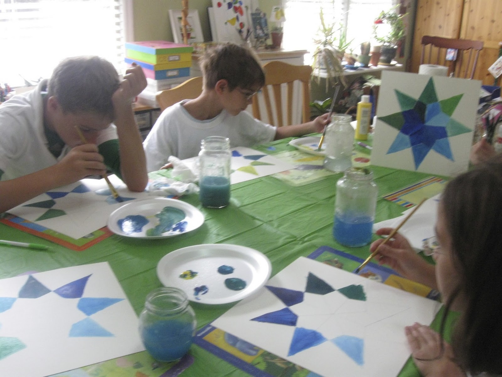 Color Blending with Origami Star. With a limited palette, students mixed paints and discovered how tint and mix for specific hues.