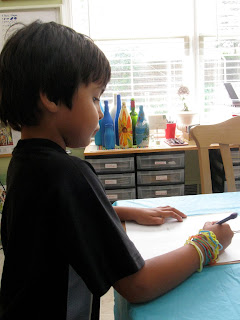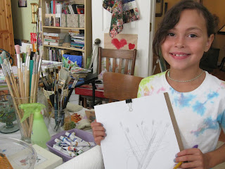 Today was back-to-art-class day for my Mid-Morning Monet group. Pencils and Paper on the table. Sketchboards. Name Cards. Markers.