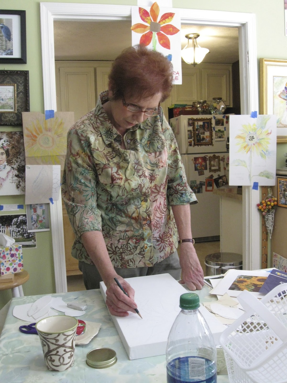 INTERMEZZO LADIES. Sunflowers Galore! Canvas prep for collage project.